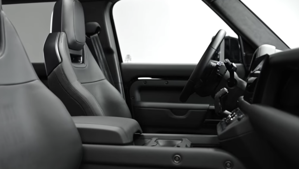 Pour être en cohérence avec le caractère spectaculaire de son extérieur noir, l’intérieur du Defender OCTA Black porte le luxe robuste à un niveau inégalé. Le cuir ébène Semi‑Aniline et le KvadratTM sont introduits dans le Defender pour la première fois, ce qui apporte aux sièges Performance une finition douce au toucher. Ils comportent des modèles uniques de perforations avec de nouvelles surpiqures sur les dossiers, tandis que les sièges arrières et les gonds des accoudoirs profitent d’une finition Carpathian Grey, ce qui confère une note audacieuse à chaque élément.