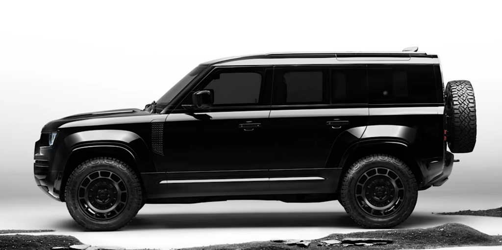 L’ovale Land Rover sur la calandre est noir avec des inscriptions en argent foncé. Même les éléments du soubassement présentent une finition Gloss Black ou Satin Black, y compris le la protection du silencieux d’échappement, le différentiel central ainsi que la barre de remorquage à déploiement électrique en option.